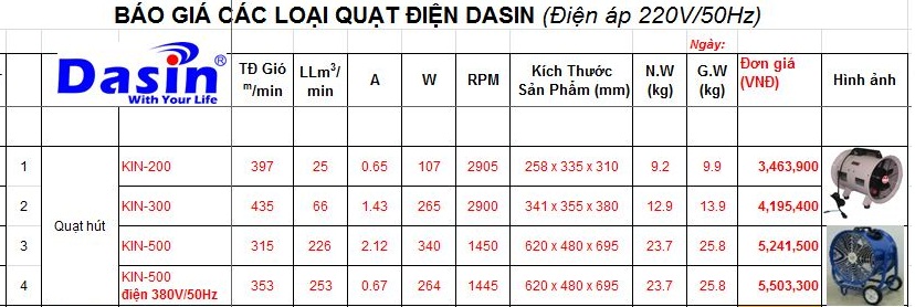 Thông số kỹ thuật : Quạt hút gió công nghiệp KIN -500