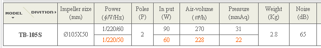 Quạt sò cao áp loại nhỏ TB-105S-TBW-51