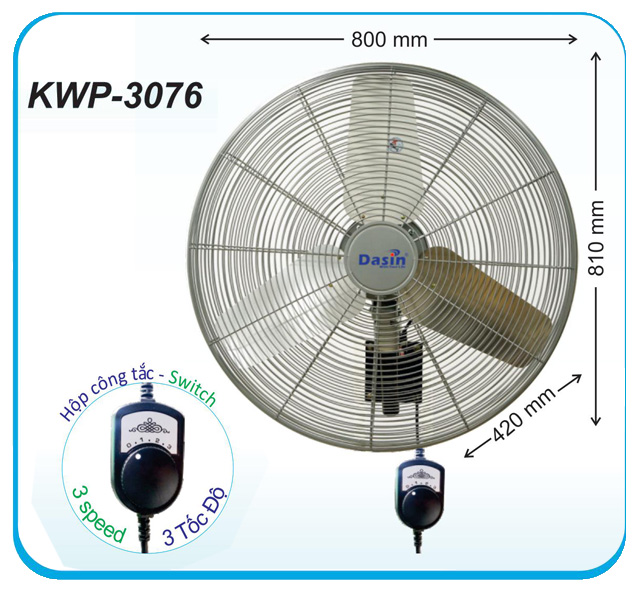 Quạt thông gió công nghiệp KVF - 3076  Sản phẩm được thiết kế lưới sắt an toàn và toàn bộ sản phẩm được sơn tĩnh điện chống rỉ sét ,